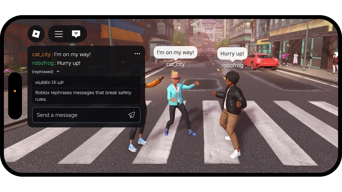Robloxは2026年3月、チャット体験を根本から見直した新方針を発表した。これまでプラットフォームでは不適切な表現を「#####」に置き換えてブロックしていたが、この方式がコミュニケーションの流れを妨げるとして、「リアルタイム言い換え(real-time rephrasing)」方式への移行を進める。たとえば「Hurry tf up!」は自動的に「Hurry up!」へと変換される。